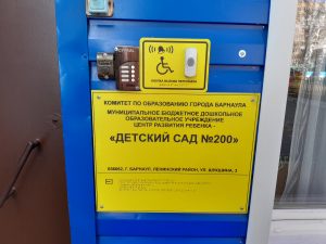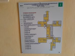 Вывеска ДОО и план в коридоре ДОО выполнены рельефно-точечным шрифтом Брайля